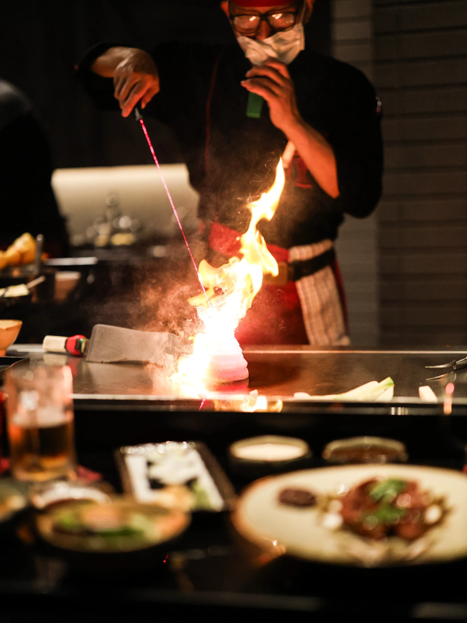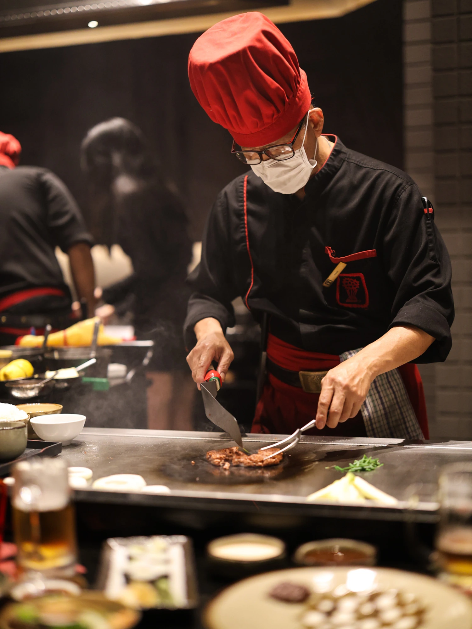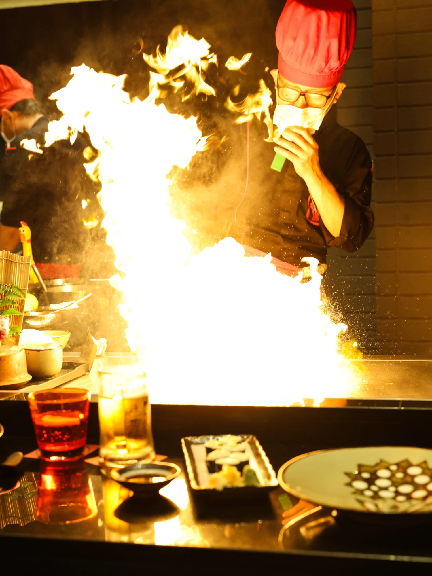 Yhtenä iltana kävimme teppanyaki-illallisella Benihana-ravintolassa, joka sijaitsee Riverside Plazassa. Teppanyaki on japanilainen ruoanlaittotyyli, jossa kokki valmistaa ruoan kuumalla rautalevyllä suoraan asiakkaan pöydän edessä. Jokaisella pöydällä on oma kokki, ja ruokalistalta valitaan oma teppanyaki-setti. Tarjolla on kalaa, äyriäistä, erittäin laadukas kasvismenu ja ehkä se herkullisin: kobe-lihaa. Ei ole varmastikaan vaikeaa arvata, minkä menun minä valitsin. Tottakai kobe-lihaa, ja kaveriksi jättikatkarapuja. Taivaallista.