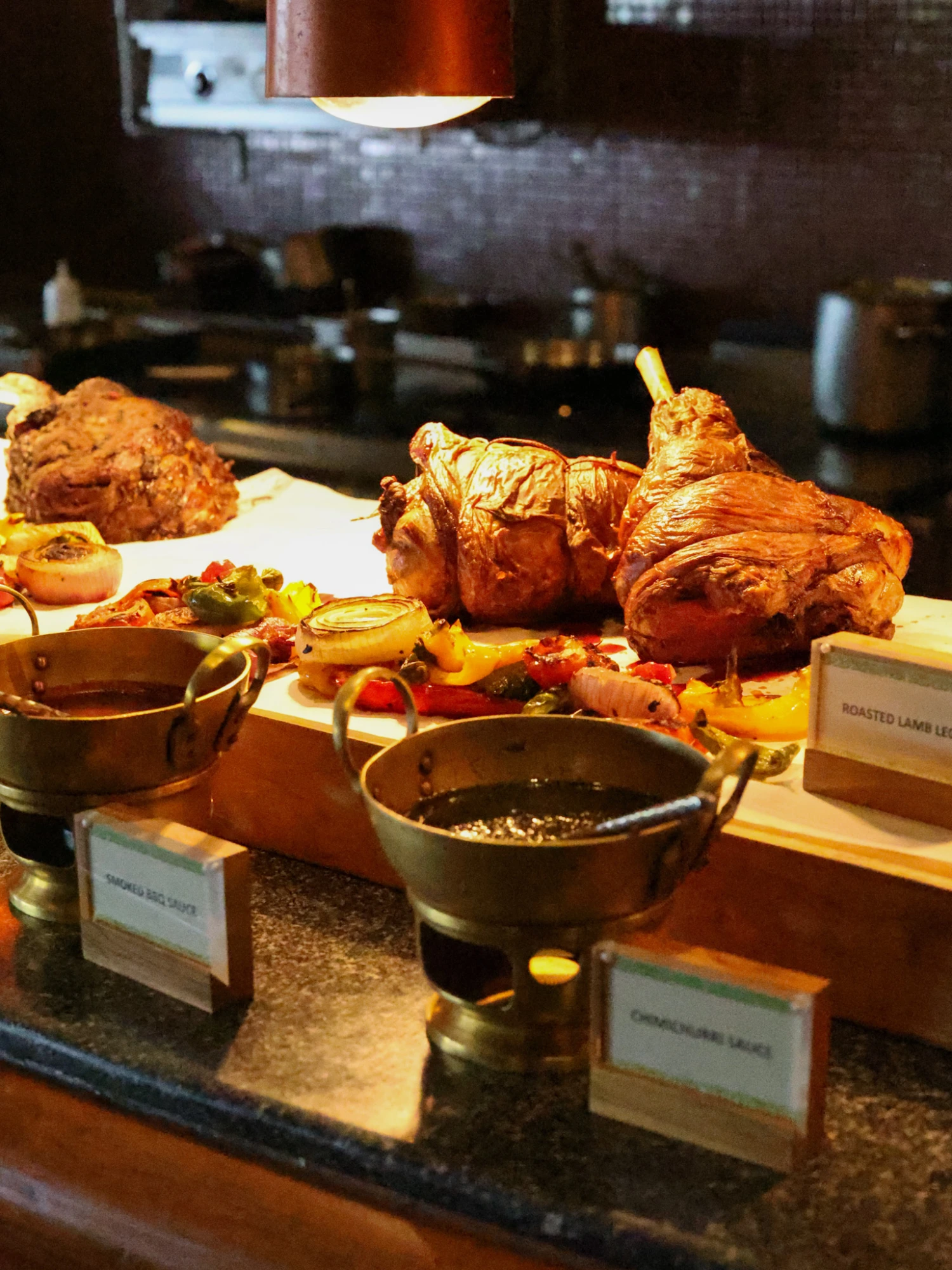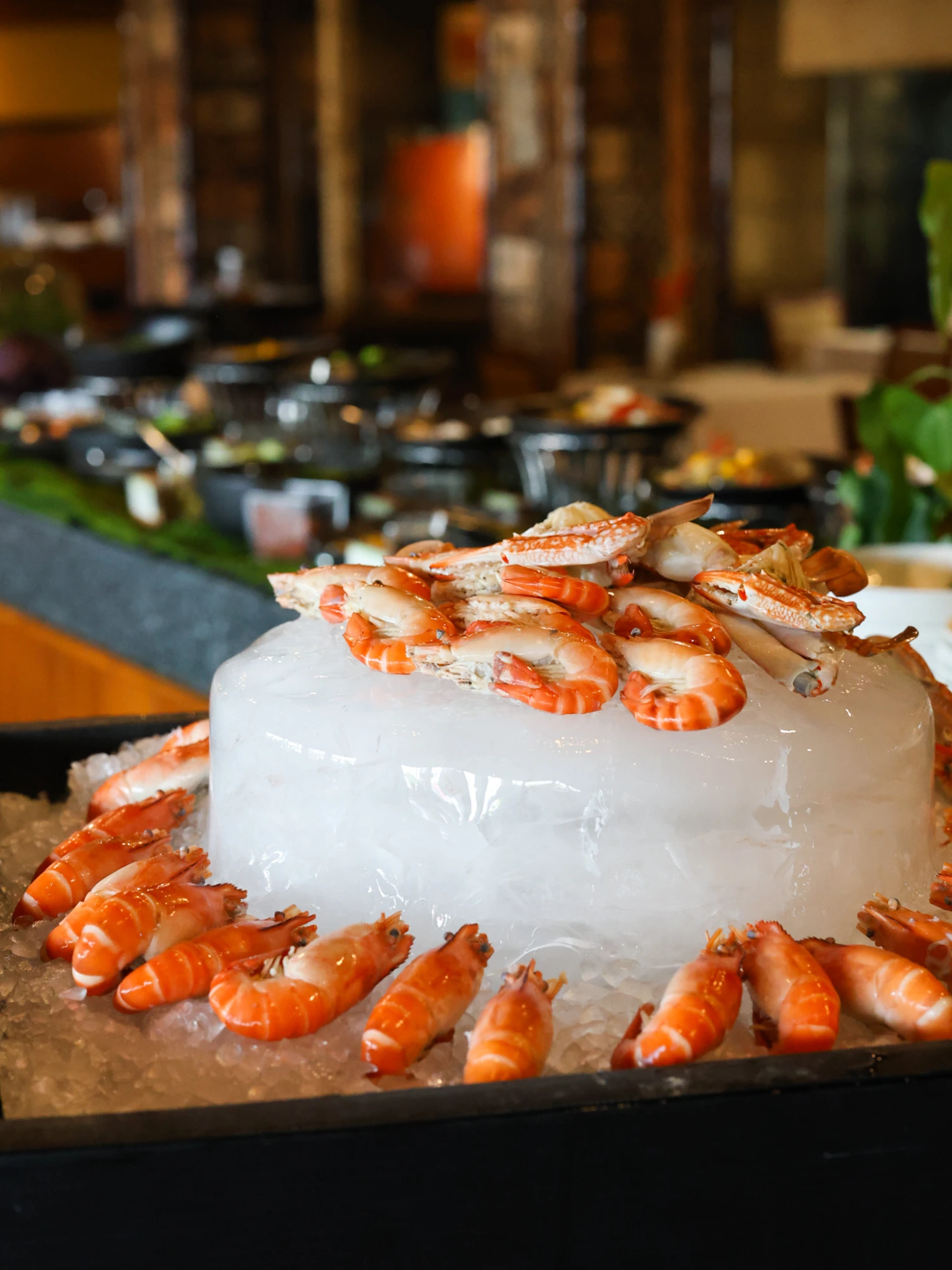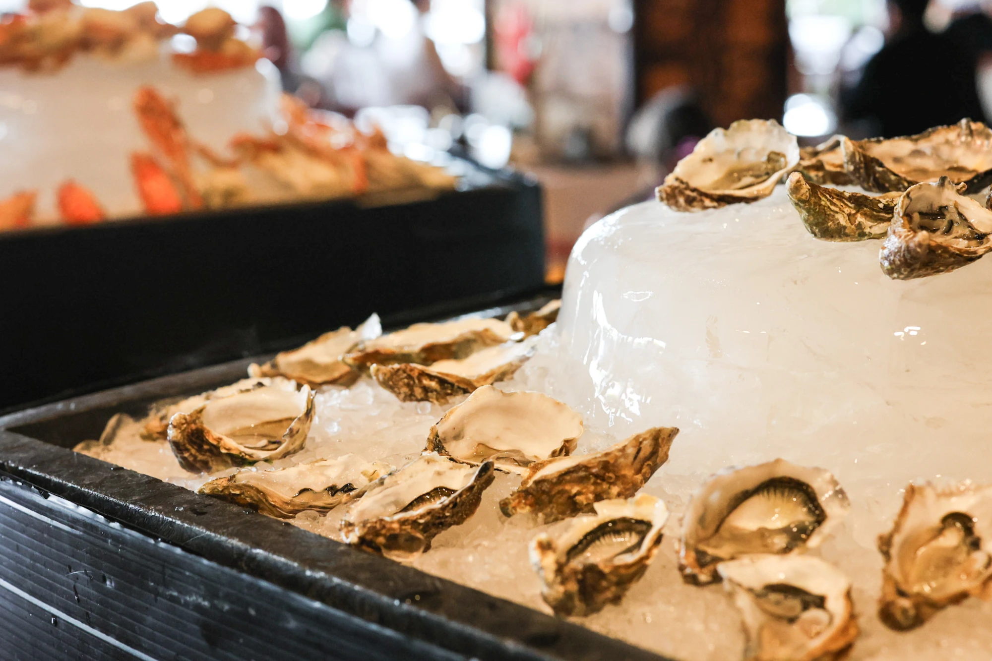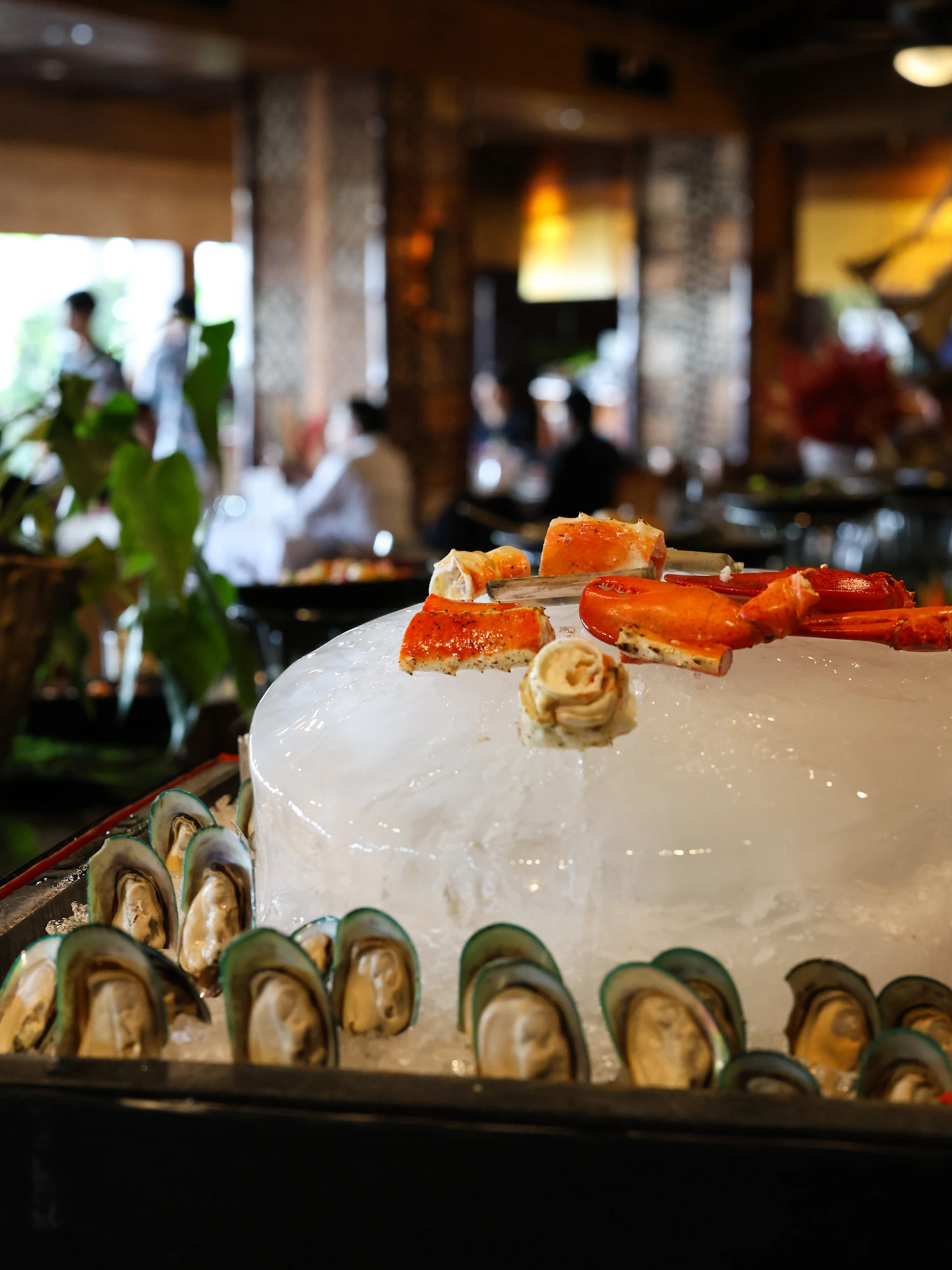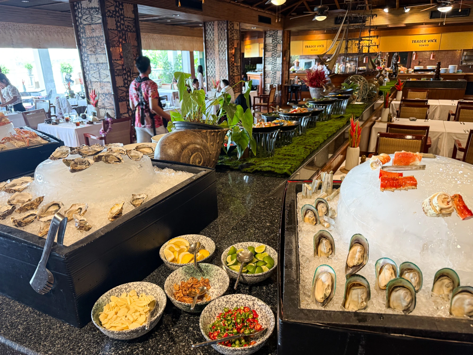 Ja sitten päästäänkin ruokaan. En ole varmastikaan eläessäni ollut näin hienolla brunssilla. Pöydät kirjaimellisesti notkuivat ruokaa, ja lisäksi sai tilata listalta erikoisannoksia kuten alaskalaista lumirapua. Etenkin mereneläviä löytyi laidasta laitaan, oli sushi-osastoa, oli ostereita, hummeria, rapuja, simpukoita – vaikka ja mitä. Ja jälkiruokavalikoima oli aivan käsittämätön. Ruokataivas jatkui ulkona, jossa oli seitsemän eri live cooking stationeita tarjoilemassa aika pitkälle mitä tahansa sinun teki mieli syödä.