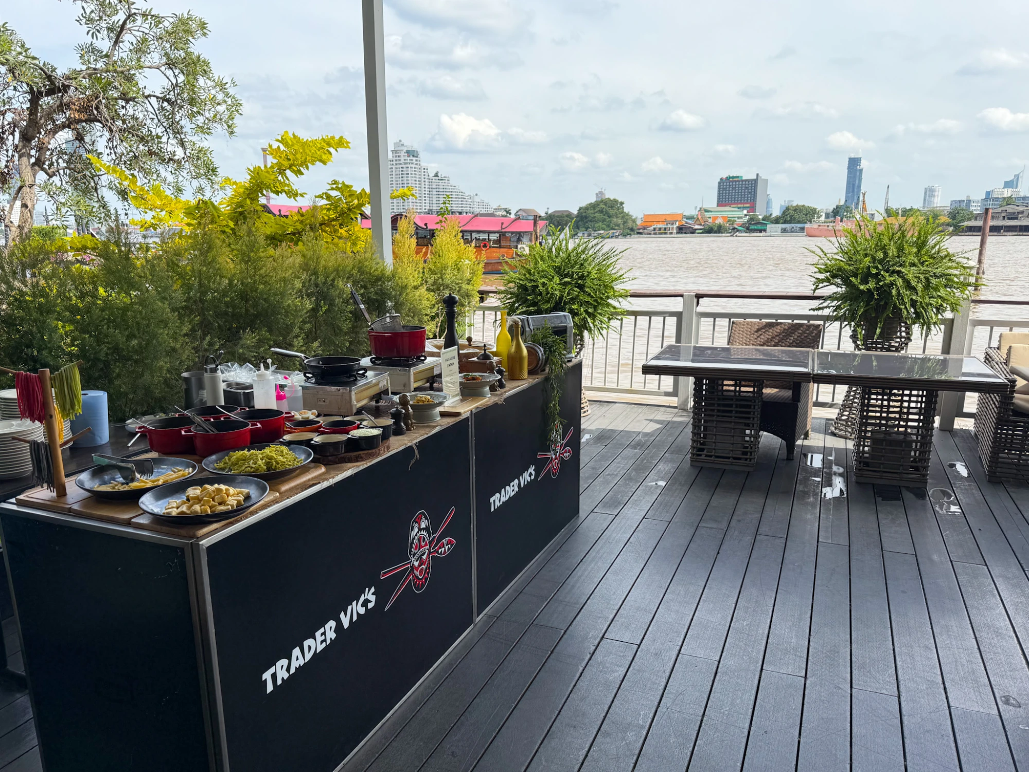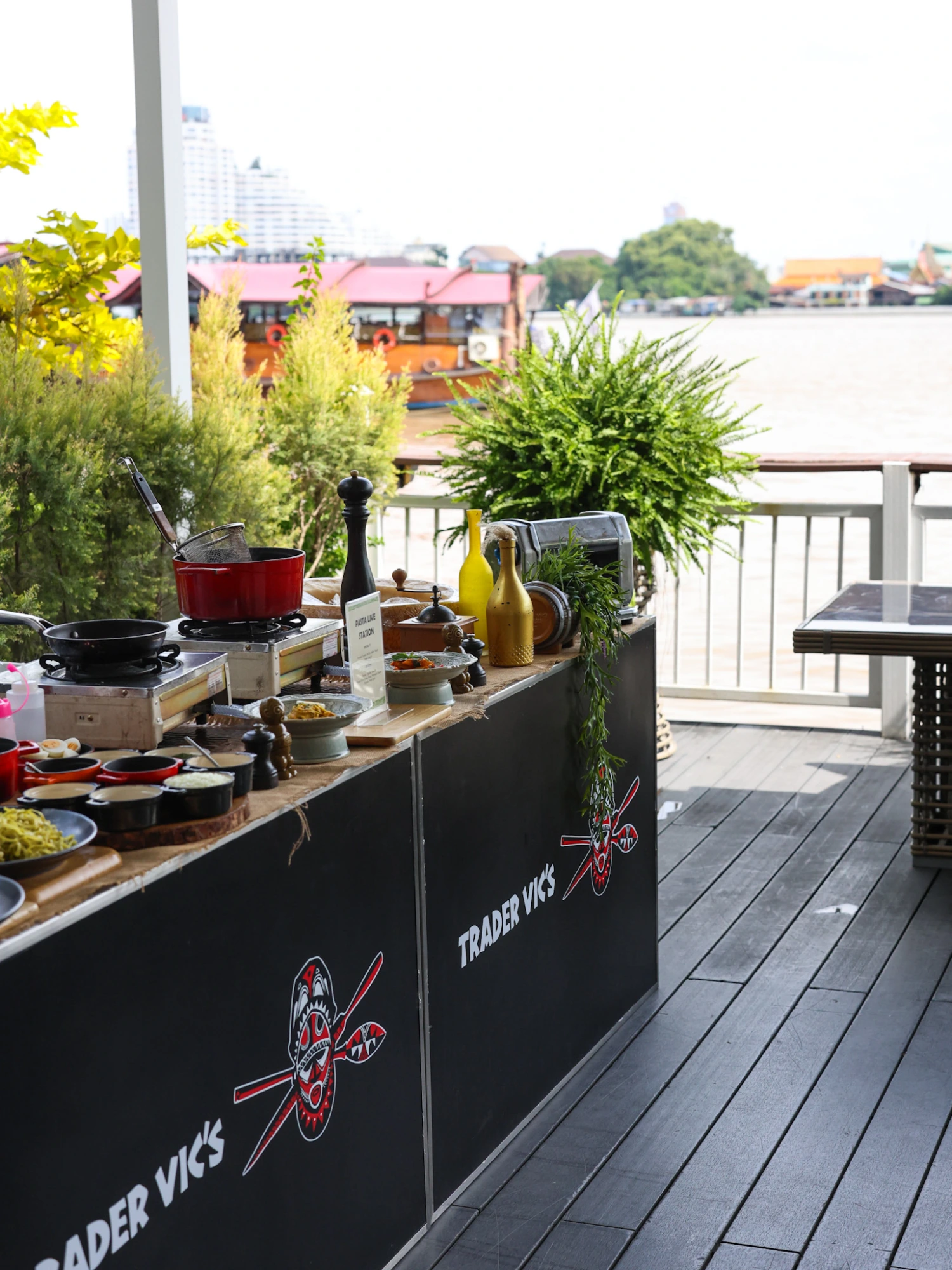 Trader Vic’s Bangkokissa yhdistää alkuperäisen konseptin eksotiikan, puukeittiön sekä näyttävät cocktailit thaimaalaiseen vieraanvaraisuuteen ja joenrantamiljööseen. Ravintola tarjoaa elämyksen, joka vie vieraan hetkeksi pois Bangkokin sykkeestä – suoraan polynesialaiseen tunnelmaan.