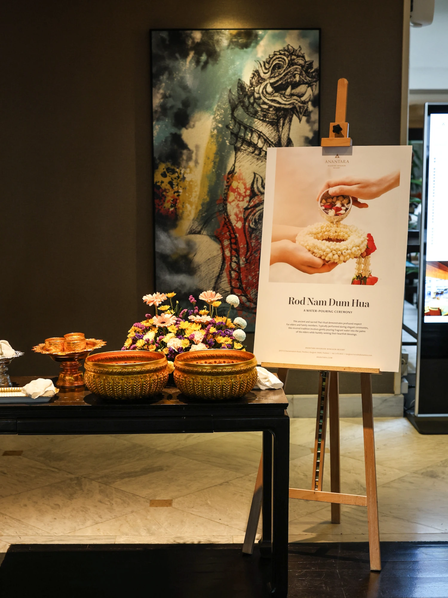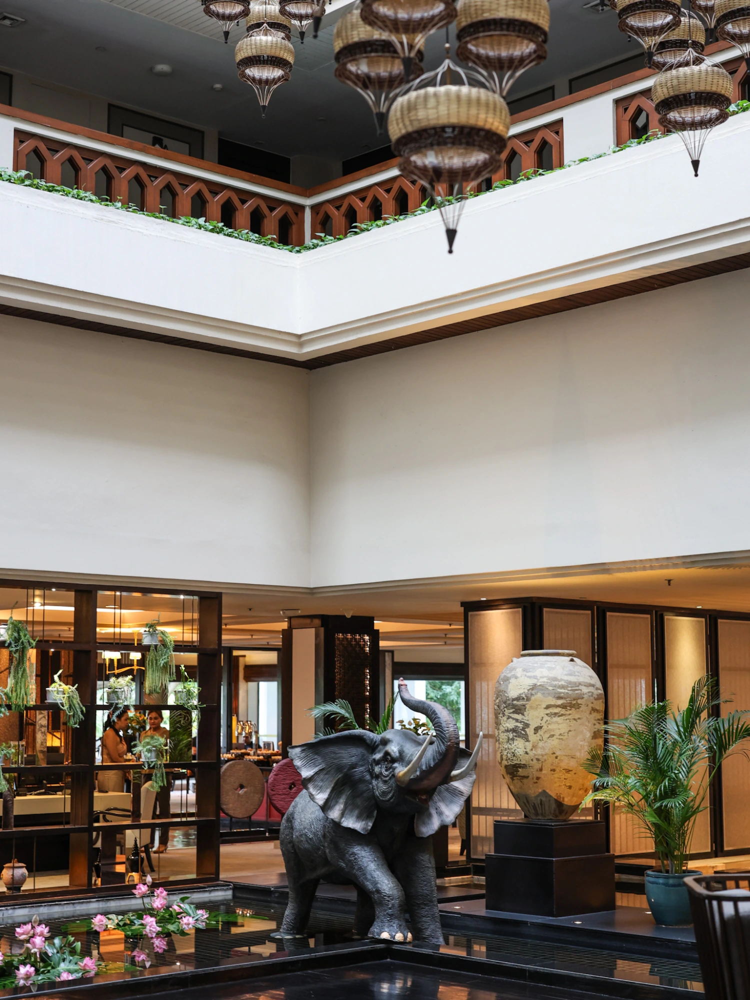 Anantaraan saapuessa tuntee itsensä kuninkaalliseksi. Saavut limusiinilla, ovet avataan ja sinut saatetaan upeaan aulaan. Kauniisti suunniteltu tila avautuu kerroksittain: vesiputouksia, taidekokoelmia, maalauksia, patsaita, eläviä kukkia ja rauhoittavia vesielementtejä, joita kehystävät korkealle kohoavat atriumit. Aulassa on niin paljon katsottavaa, että tuntuu kuin astuisi omaan taidegalleriaan. Se on yksi kauneimmista hotelliauloista, joissa olen koskaan ollut.