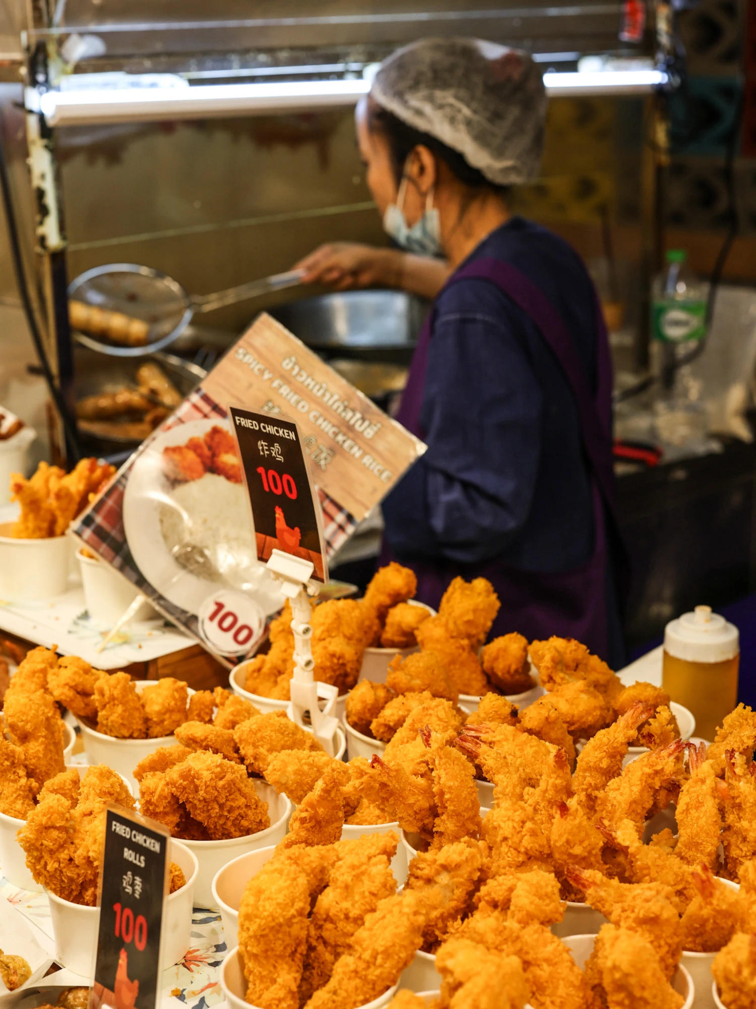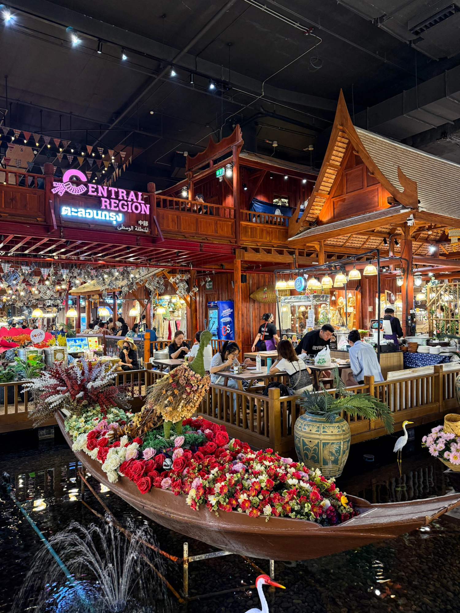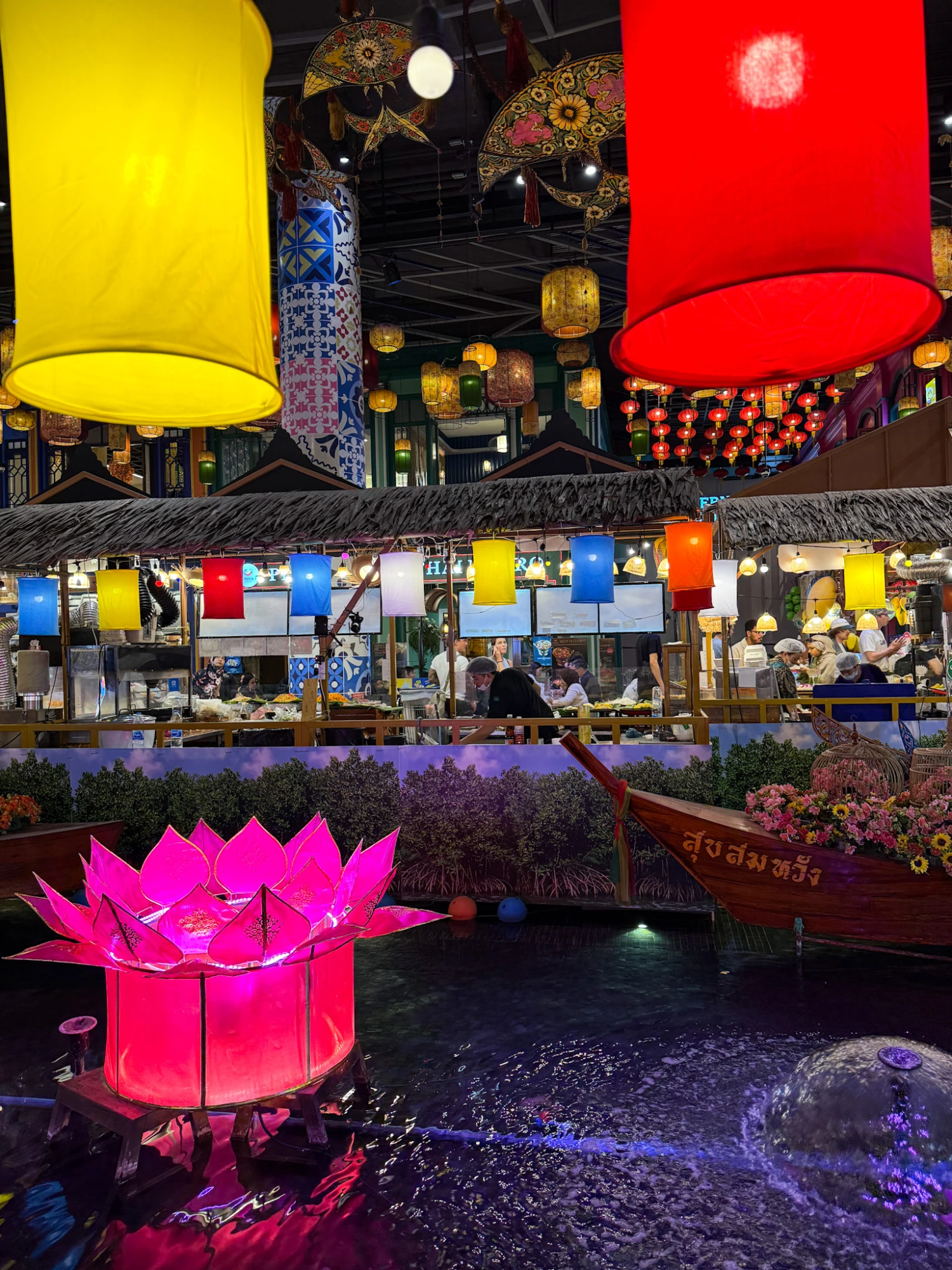 Koska me olemme olleet jo viime kerralla Asiatiquessa (jota suosittelen!), päätimme lähteä kastastamaan ICONSIAMin ostoskeskuksen ja eritoten sen street food-maailman alakerrassa. Me olemme night market-ihmisiä, ja harrastamme aina Thaimaassa niin monta night marketia, jota ehdimme vaan mitenkään koluta läpi. ICONSIAMin alakerta oli kyllä kokemisen arvoinen, ja sanoisin että jos on herkkä kuumuudelle, niin tällainen night market ilmastoidussa ostoskeskuksessa on kyllä hyvä. Mutta henkilökohtaiseen makuun jotain autenttisuutta jäi kyllä uupumaan. Mutta kyllä me sen verran viihdyttiin, että ehdittiin syödä ja juoda vähän herkkuja.