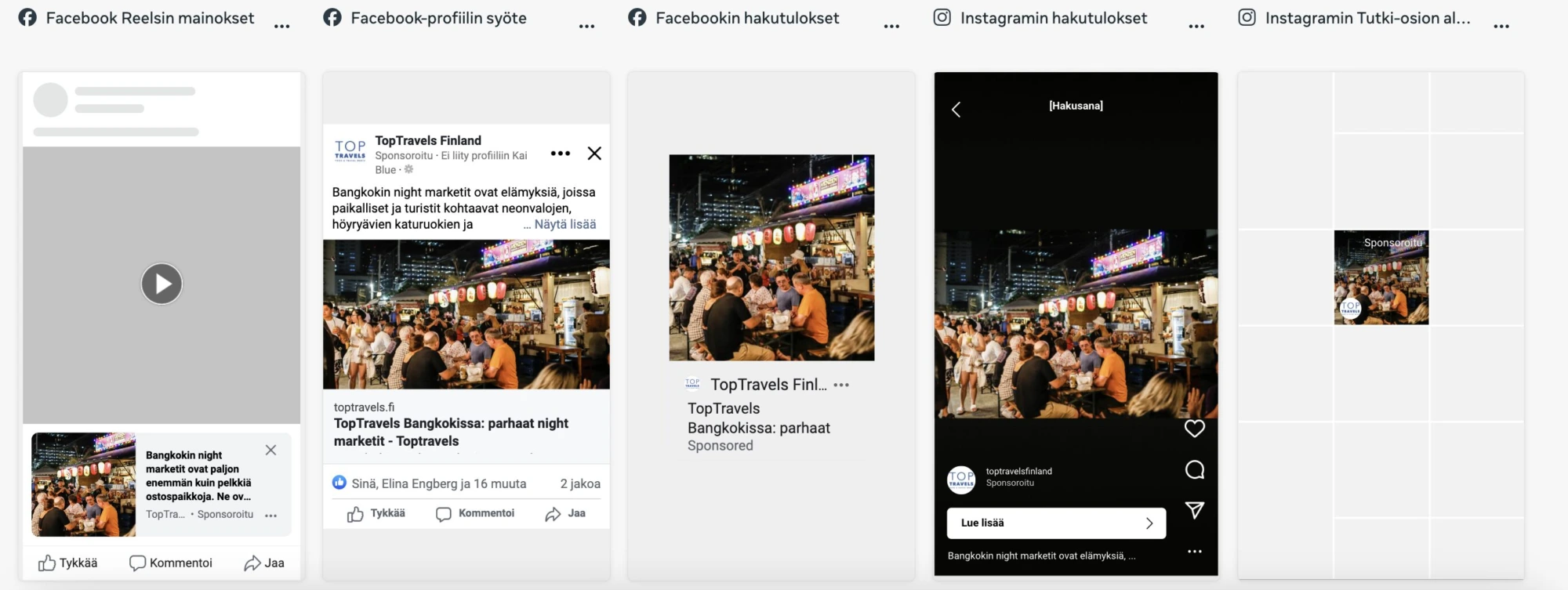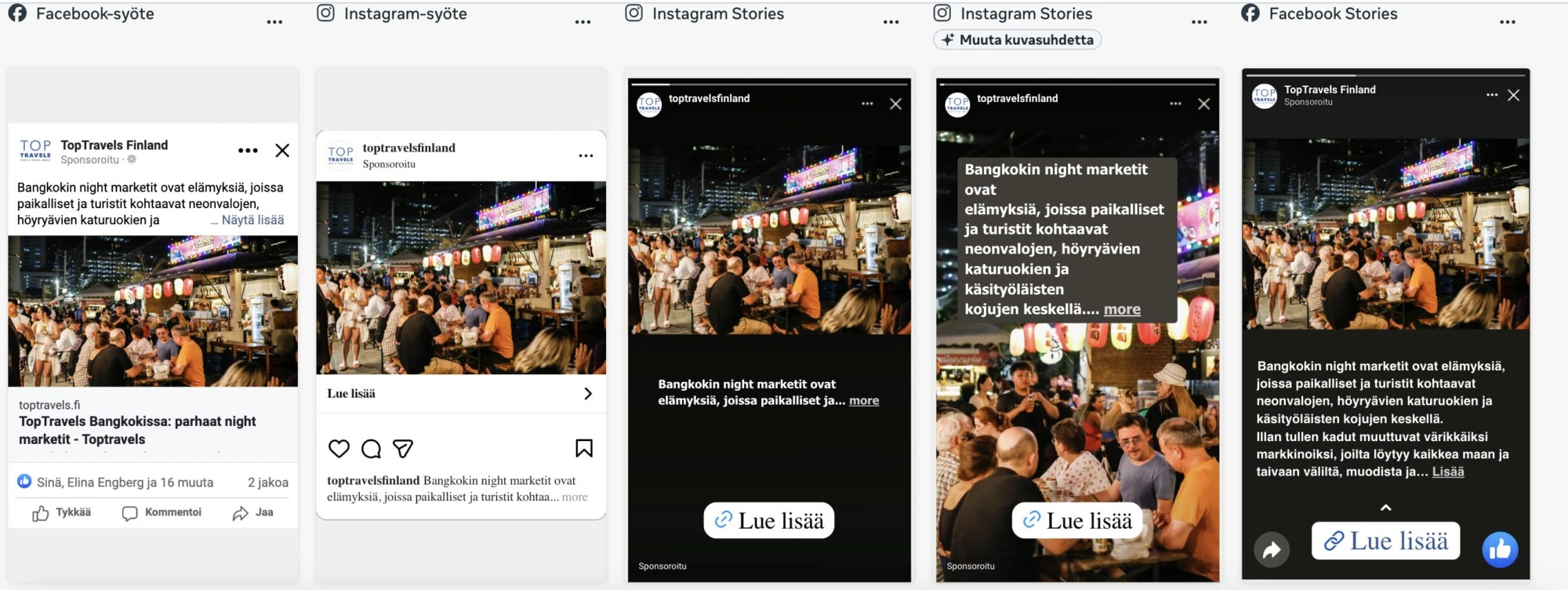 TopTravels’ digital multi-format campaign is not just a single post, but a combination of several elements. The shared goal of all campaign elements is to increase the visibility of your article and drive traffic to the article published on TopTravels.fi, which serves as the campaign landing page.