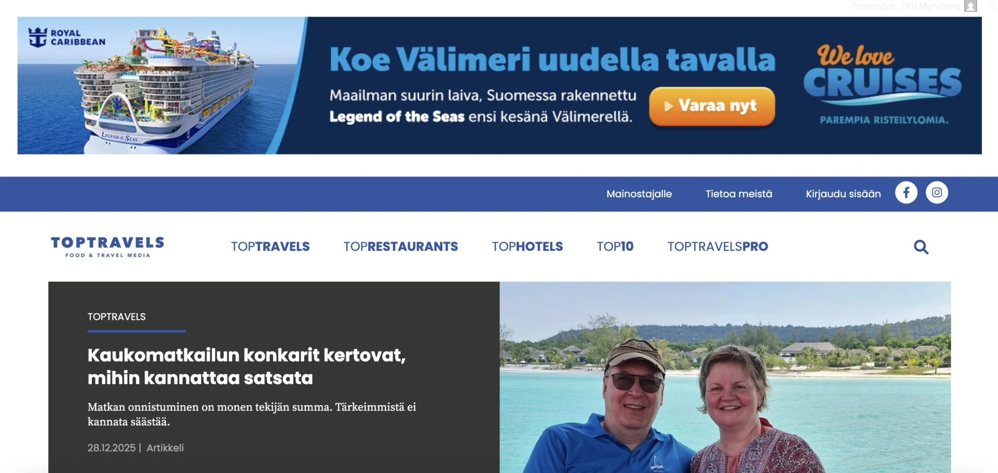 TopTravels is one of Finland’s most far-reaching online media channels focusing on travel, culture and the restaurant industry. We publish daily content, both organic and paid, designed to engage Finnish audiences. Our articles regularly rank at the top of Google search results, and our website attracts tens of thousands of unique visitors every week from across Finland. Individual articles can reach over 100,000 readers organically.