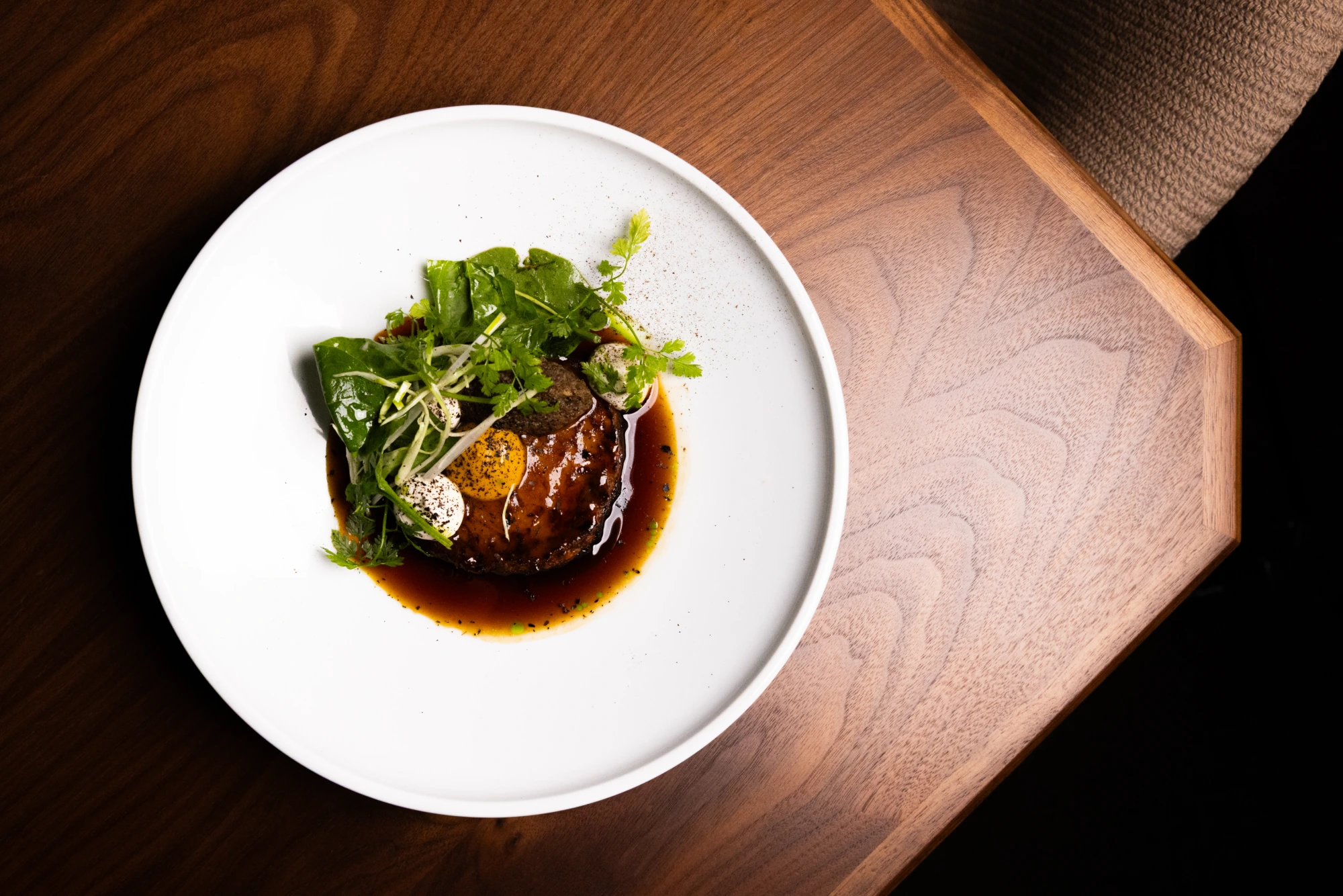 Baarin puolelle voi piipahtaa lasilliselle ja tilata keittiöstä annoksia fiiliksen mukaan. Sama ajatus ohjaa koko taloa. Laatu, selkeys ja makujen tasapaino näkyvät sekä lasissa että lautasella.