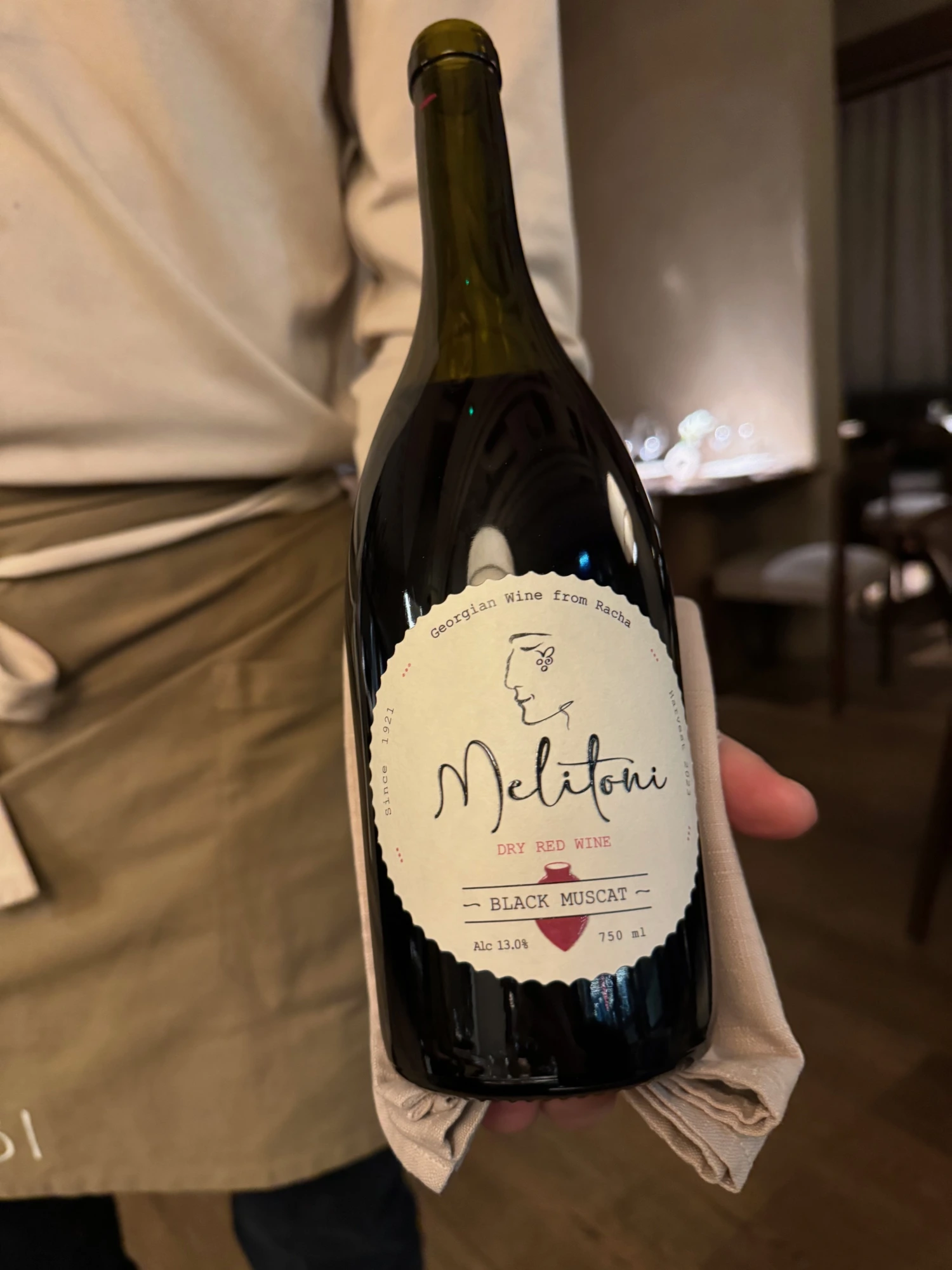 Alkuruokien kanssa olisimme hyvin voineet valita myös lasilliset valkoviiniä, mutta päätimme tällä kertaa edetä yhden lasin taktiikalla (arkipäivä ja työt) ja keskittyä viiniparin valintaan pääruoille. Punnitsimme kahden georgialaisen punaviinin välillä, Masavali ja Melitoni. Lopulta Melitoni vei voiton. Sen aromit miellyttivät meitä molempia ja sopivat täydellisesti illan makumaailmaan.