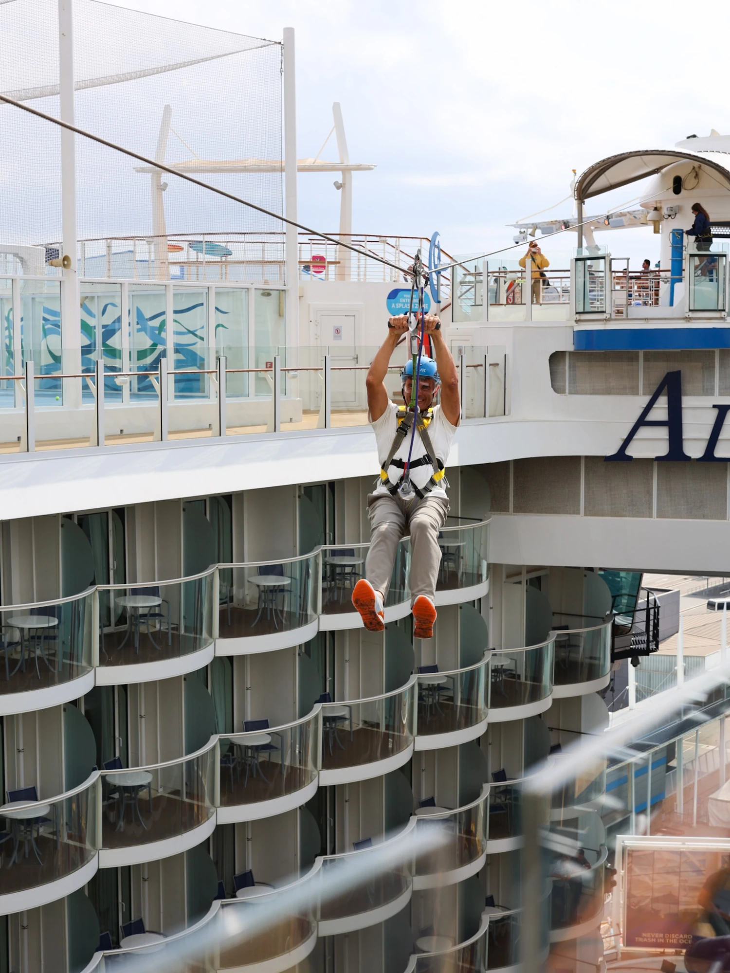 Meidän edellinen risteilykokemus oli Celebrity Cruisesin Karibian-risteily, jossa koko perheen aktiviteettja oli huomattavasti vähemmän kuin Allure of the Seasillä. Royal Caribbeanin konsepti sopii selvästi paremmin lapsiperheille, sillä aktiviteetteja on täällä poikkeuksellisen paljon. Laivalta löytyy liukumäkiä ja vesiliukumäkiä, useita altaita, minigolfratoja, suuri pelihalli ja jopa kiipeilyseinä, koripallokenttä sekä vaijeriköysirata! Meidän suuri suosikki oli pelihallin ilmakiekkopeli, jonne taidettiin jonkun verran matkabudjettia upottaa.