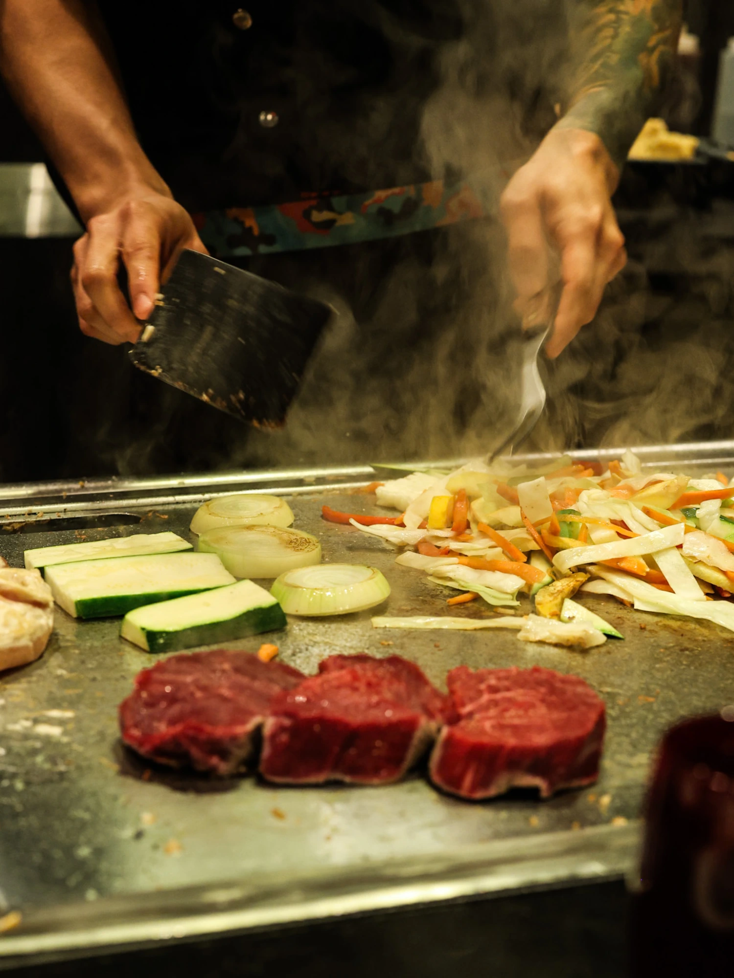Me ostimme viikon risteilylle kolme erikoisillallista. Yhtenä iltana menimme teppanyaki-illalliselle, jossa kokki valmistaa ruoan pöydän ääressä showtyyliin. Kokemus on viihdyttävä ja erilainen verrattuna perinteiseen ravintolaillalliseen. Jos et ole koskaan kokeillut teppanyakia, tämä on erinomainen tilaisuus testata konseptia.