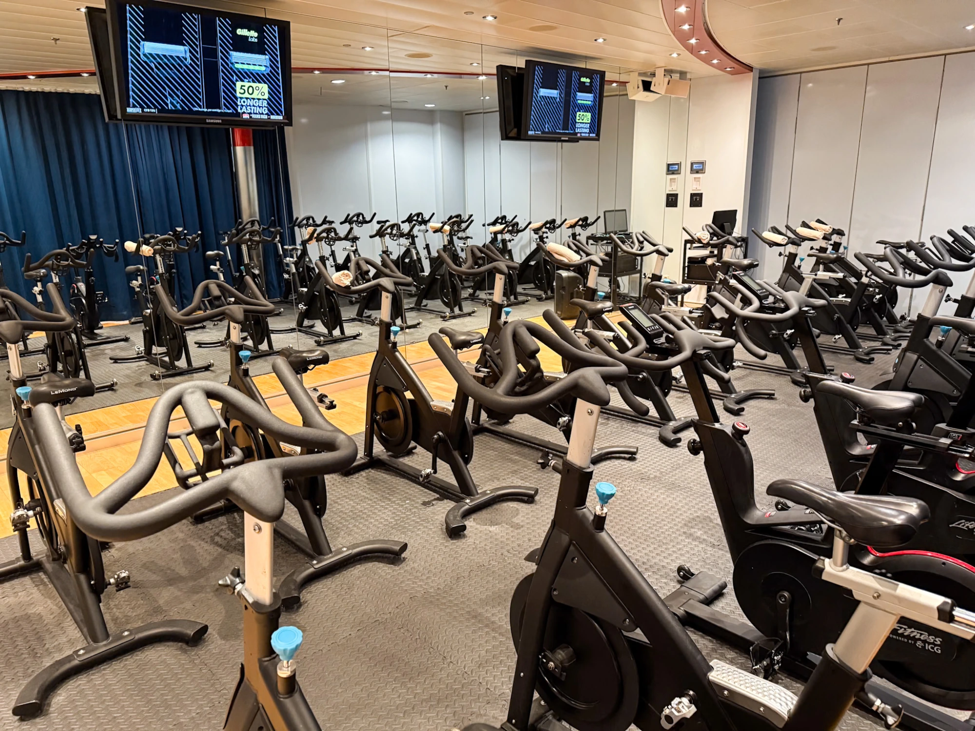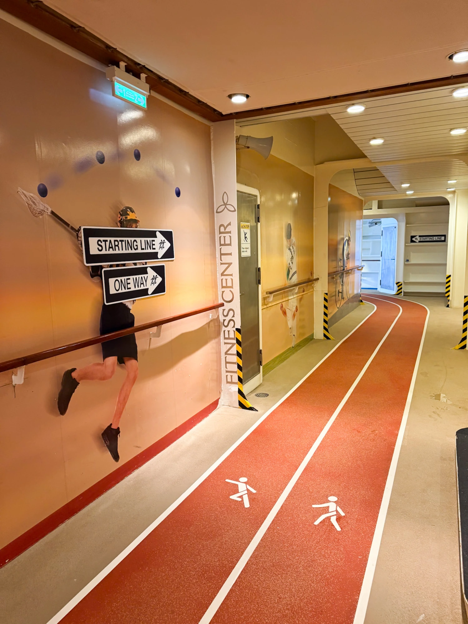 Lisäksi laivalla oli aivan fantastinen kuntosali, sekä lenkkeilijöille laivaa kiertävä juoksurata. Tarjolla oli myös ryhmäliikuntatunteja kuten pilatesta ja joogaa.