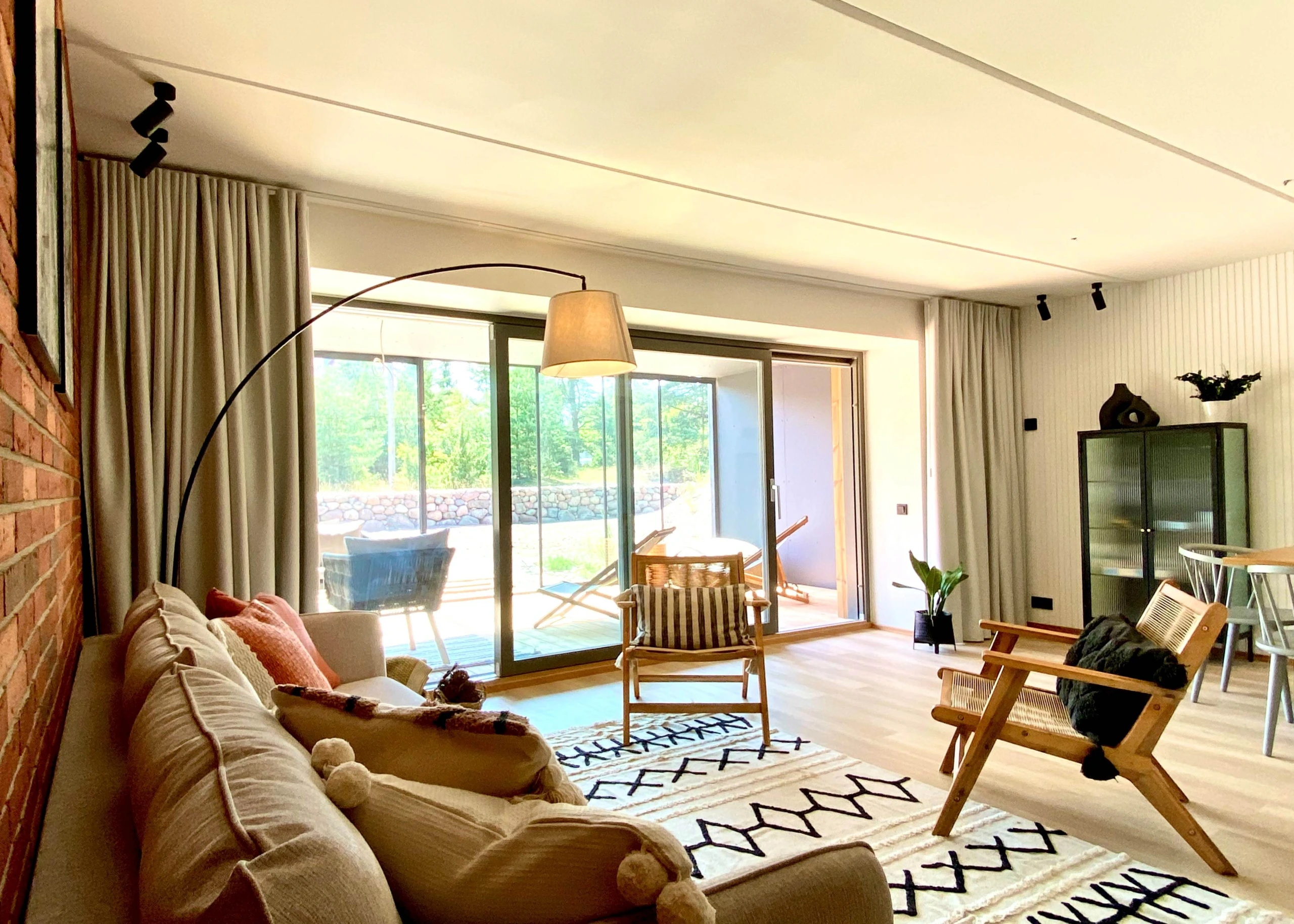 Perinteisten hotellihuoneiden lisäksi tarjolla on tilavampia majoitusvaihtoehtoja, kuten yhden ja kahden makuuhuoneen huoneistoja sekä neljän makuuhuoneen huviloita. Kaikki majoitustilat on suunniteltu mukavuutta ja pidempiä oleskeluja varten: niissä on oleskelutilat sekä täysin varustellut keittiöt, jotka luovat kodinomaisemman tunnelman ja mahdollistavat asettumisen pelkän yöpymisen sijaan. Yksityiset sisäänkäynnit ja suuret lasitetut terassit tuovat lisäyksityisyyttä, jota arvostavat erityisesti rauhaa hakevat vieraat. Sörwespa tarjoaa majoituskokemuksen, jossa korostuvat väljyys, rauha ja yhteys ympäröivään luontoon. Kokonaisuus on suunniteltu erityisesti pidempiä oleskeluja varten, jolloin vierailu ei ole vain yöpymistä, vaan osa hitaampaa elämäntapaa.