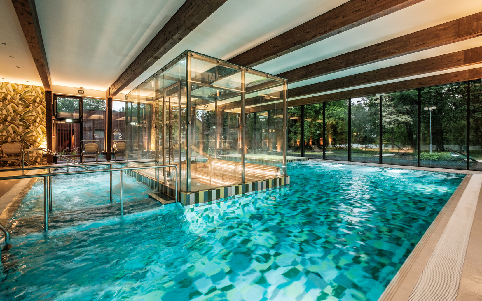 Ympäröivä puisto, suojaisa sisäpiha ja skandinaavisen valoisat rakennukset muodostavat kokonaisuuden, jossa viihtyminen onnistuu ympäri vuoden. Kesällä alue herää eloon, talvella rauhoittava tunnelma ja kylpylän suuret ikkunat tarjoavat kauniit näkymät vuodenaikojen vaihteluun.