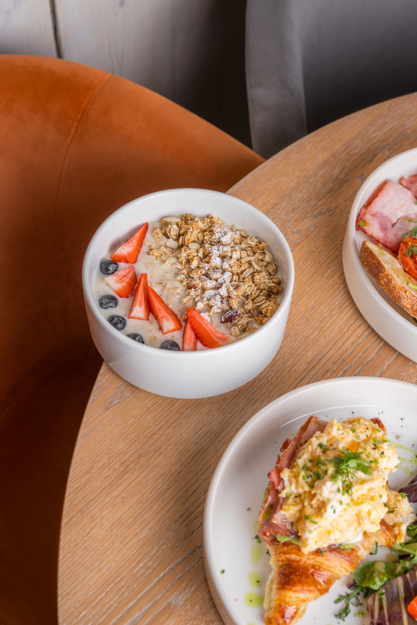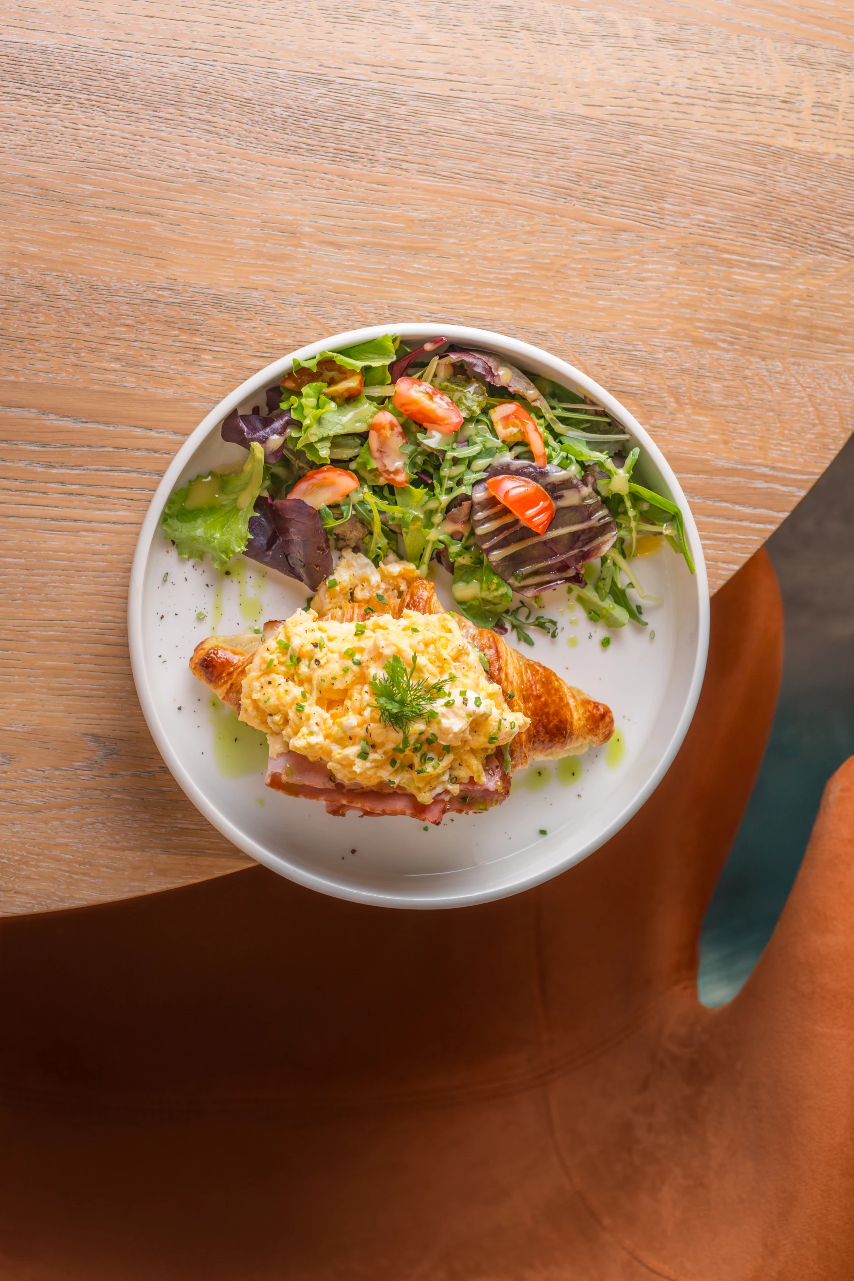 Suosittelemme maistamaan voita tihkuvaa croissantia, joka tarjoillaan pekonin ja munakokkelin kera, tai rapeita perunapannukakkuja, joihin on lisätty uppomuna ja savustettua lohta – kaksi asiakkaidemme suosikkia.