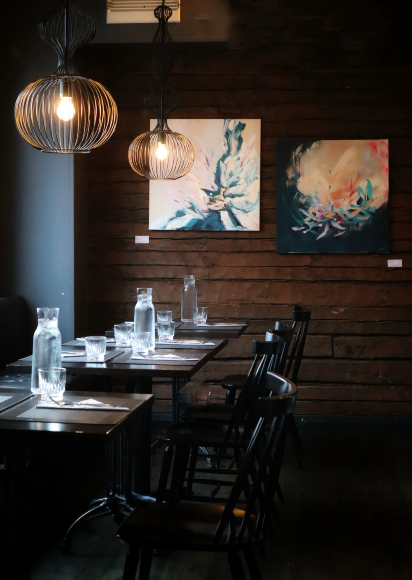 Ravintolassa järjestetään kuukausittain vaihtuvia taidenäyttelyitä, jotka tuovat tilaan eloa ja uusia näkökulmia. Taide ei ole erillinen elementti, vaan osa arkea ja ravintolan henkeä. Vanhan rakennuksen puitteet, puupinnat ja vuodenaikojen vaihtelu luovat taustan, jossa ruoka saa olla keskiössä ilman suuria eleitä.