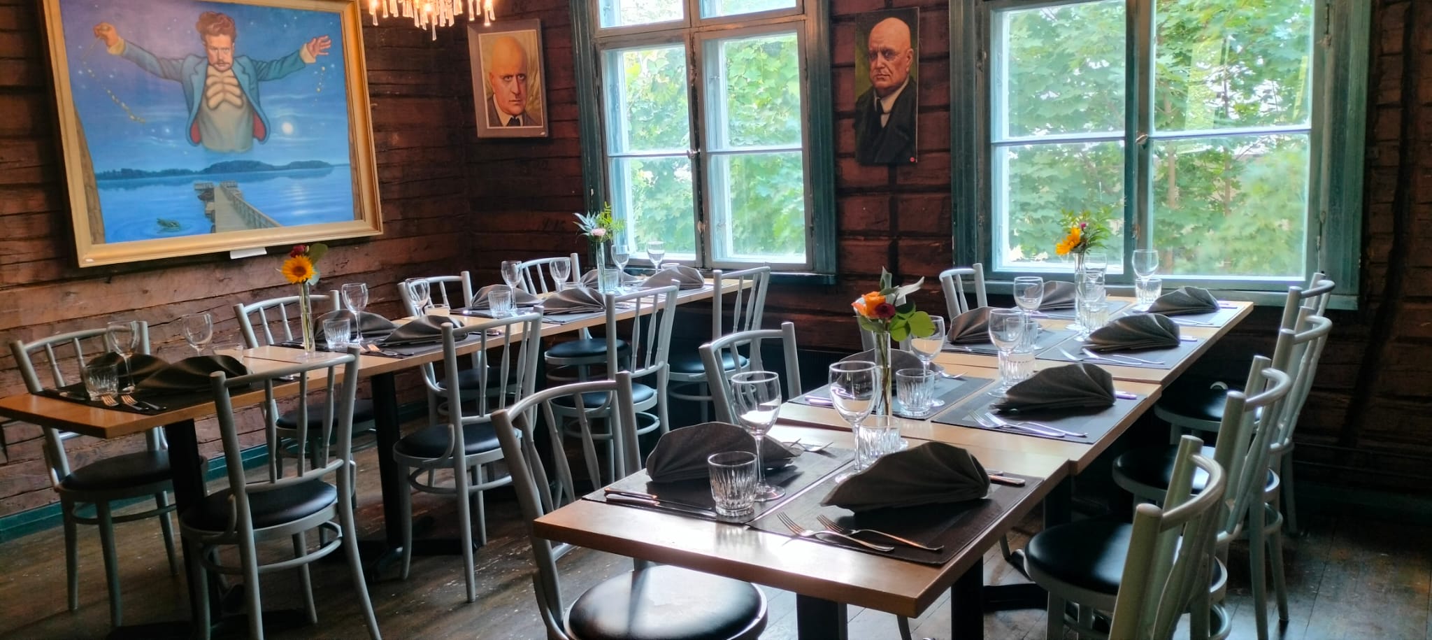 Ravintolassa järjestetään kuukausittain vaihtuvia taidenäyttelyitä, jotka tuovat tilaan eloa ja uusia näkökulmia. Taide ei ole erillinen elementti, vaan osa arkea ja ravintolan henkeä. Vanhan rakennuksen puitteet, puupinnat ja vuodenaikojen vaihtelu luovat taustan, jossa ruoka saa olla keskiössä ilman suuria eleitä.