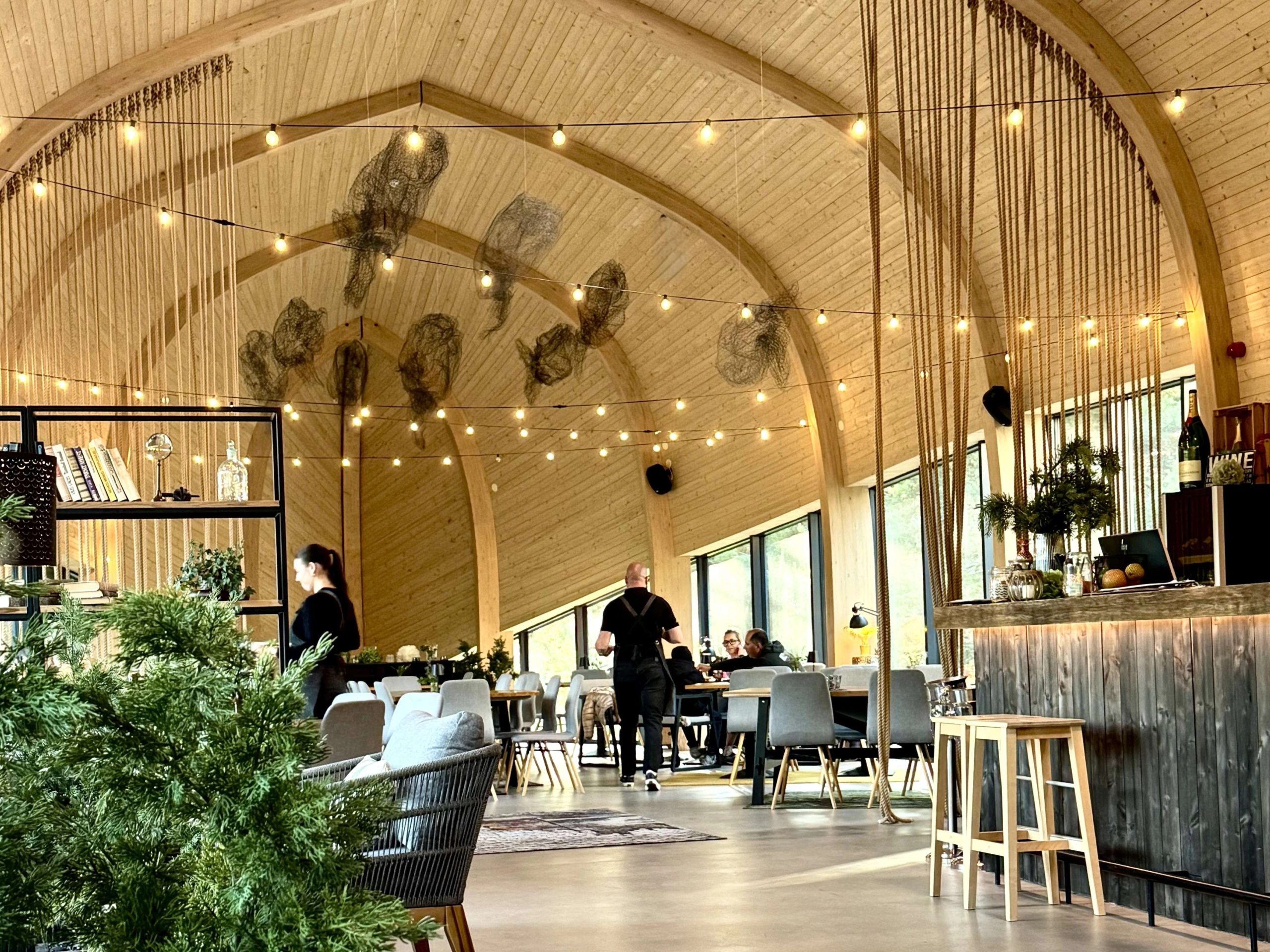 Tavoitteena ei ole tehdä vaikutusta tekniikalla, vaan luoda vaivaton ja paikkaan kiinnittyvä kokonaisuus. Ruokailukokemus rakentuu eheäksi ja ympäristöönsä liittyväksi – ei konseptin varaan.
