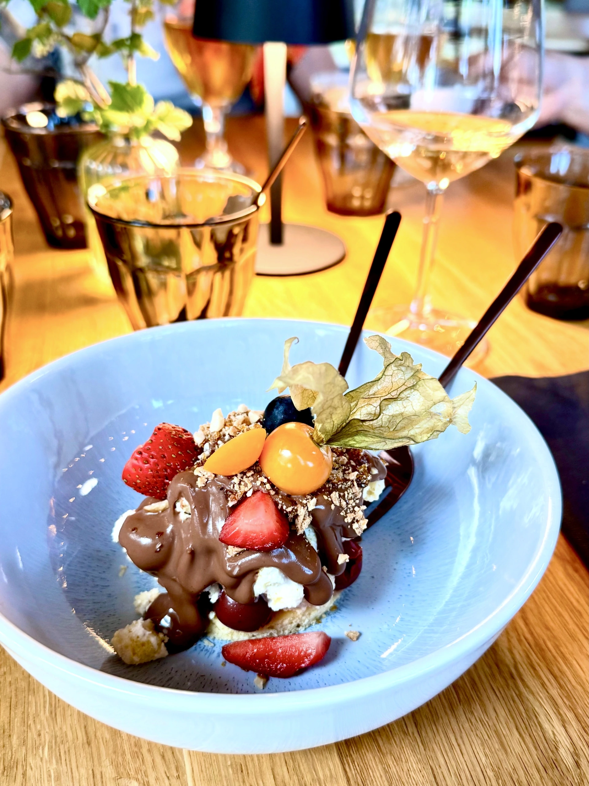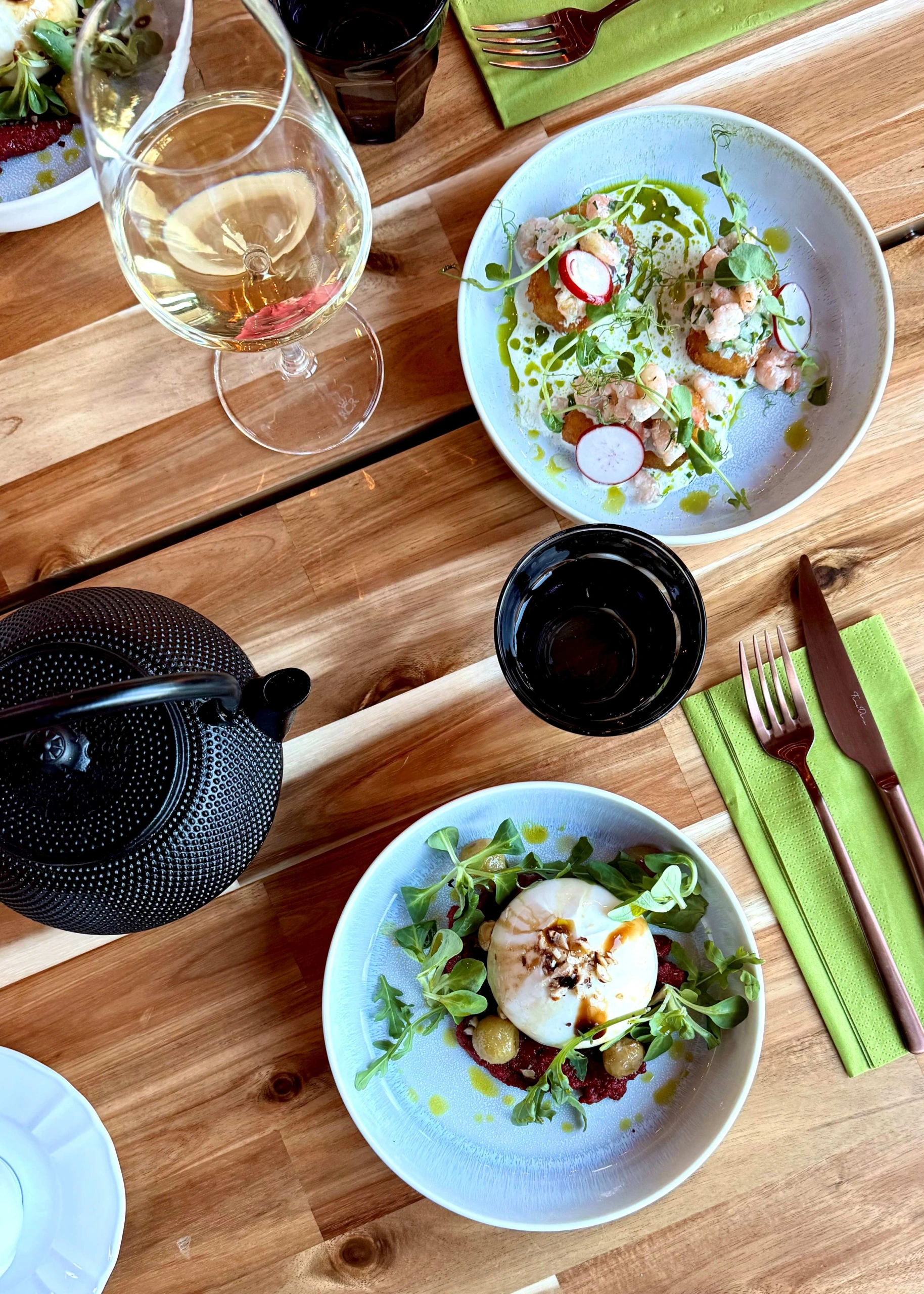 Sama ajattelu ulottuu myös juomiin. Viini- ja juomavalikoima on kuratoitu tukemaan ruokaa ja kokonaiselämystä: tasapainoisesti, helposti lähestyttävästi ja rauhalliseen, kiireettömään tunnelmaan sopivasti.